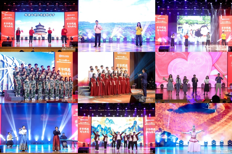 活动在师生合唱原创歌曲《寻找来电的感觉》中开启,此歌曲由学校派驻干部、寻甸县塘子街道塘子社区驻村第一书记李阿蒙创作,充分展现了学校在助力乡村振兴工作中与祖国的同频共振。此外,学院师生还通过多首歌曲表达对祖国的深情祝福,对理想的向往和对梦想的追求,用舞姿描绘出心中的山河锦绣,展现了新时代青年对传统文化的赓续传承和对祖国的真挚热爱。