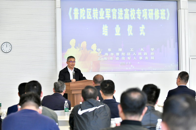 4月8日,华东理工大学承办的“普陀区转业军官进高校专项研修班”圆满结业并举行结业仪式。我校党委常委、副校长阎海峰出席仪式并致辞,普陀区副区长蒋龙,普陀区区委组织部副部长应征,普陀区退役军人事务局党组书记兼局长张峰等出席仪式。