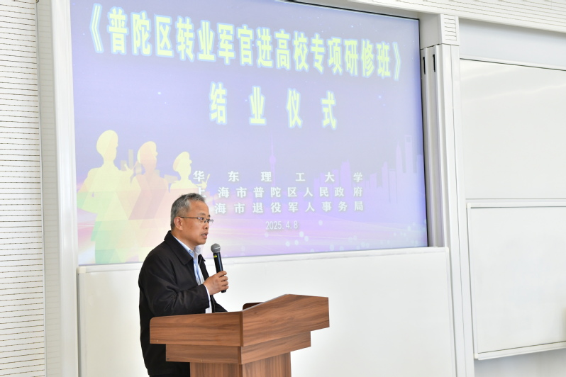 参加结业仪式的还有上海市退役军人事务局移交安置处副处长姚勇、普陀区退役军人事务局副局长强武力、普陀区投促办项目科科长张瑜,华东理工大学继续教育学院党委书记沈悦萍、科研院副院长陈锋、相关学院副院长和教授代表等。