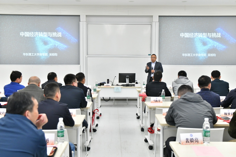 结业仪式前,吴柏钧教授还为与会同志带来了题为“中国经济转型与挑战”的专题辅导报告,深入浅出地剖析了当下中国经济转型的关键节点和面临的诸多挑战。