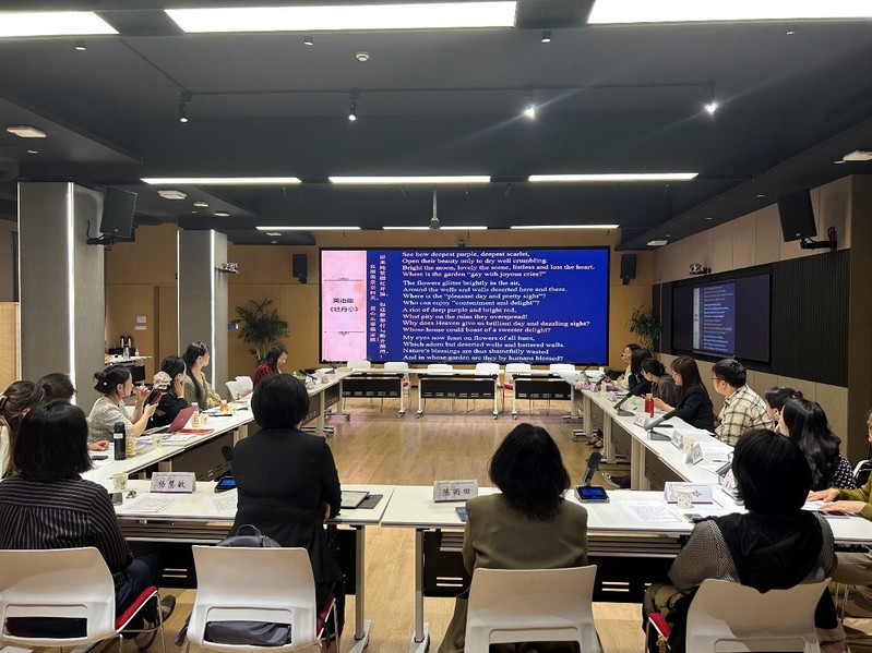 外语专业教师党支部书记张之燕对白之、汪榕培、许渊冲和黄必康的《牡丹亭》英译本进行了细致分析,指出各个译本的特色,着重分析了黄必康教授译文所体现的莎剧诗体特色与互文性。她还以其翻译的昆曲《罗密欧与朱丽叶》为案例,指出互文性在跨文化传播中的重要性。外国语学院党委委员王慧教授对能如此近距离欣赏上戏老师们的精彩演绎表示感谢,并结合自己讲授的《文学翻译》课,对《牡丹亭》英译本进行了评析。