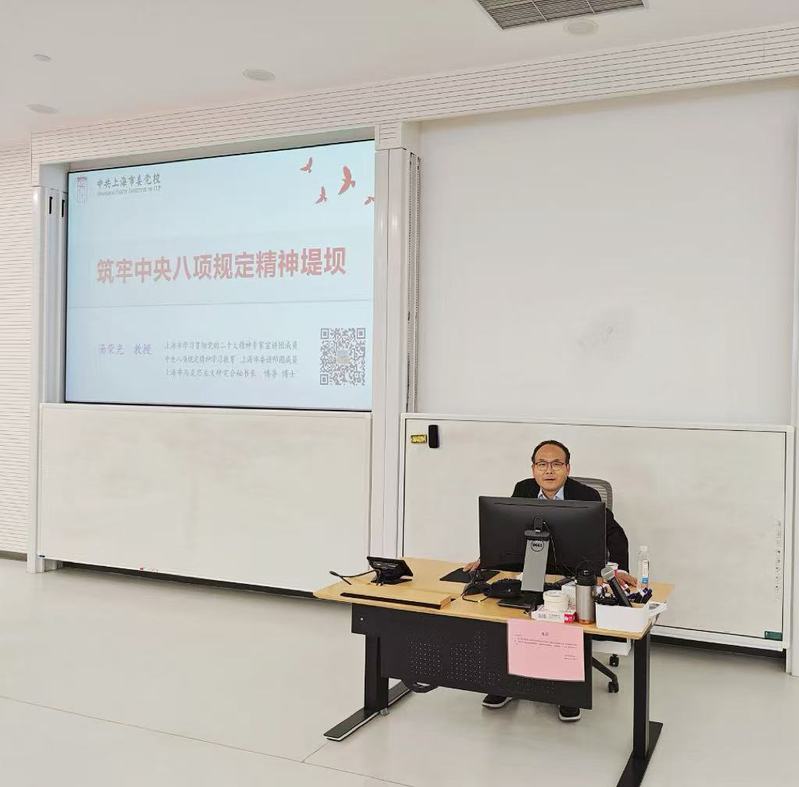 4月21日,药学院、体育学院邀请中共上海市委党校教授、上海市学习贯彻党的二十大精神专家宣讲团成员、中央八项规定精神学习教育上海市委讲师团成员、上海市马克思主义研究会秘书长汤荣光作题为“筑牢中央八项规定精神堤坝”的专题报告。学院全体教职工参加会议,会议由药学院党委书记倪炜主持,药学院、体育学院党政班子成员,教师党员共同参加学习。