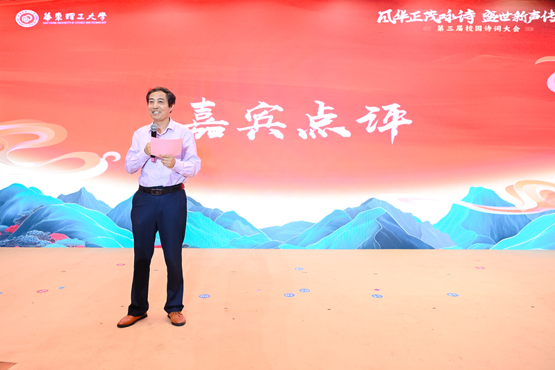 李定广对比赛作整体点评。他为参赛选手优异的表现和扎实的诗词功底喝彩,为精彩的中场节目点赞,也赞叹本次诗词大会的进步与突破并送上真挚的祝福,勉励同学们以诗词为舟,坚定文化自信,传承东方大爱,续写中华诗词新篇章。