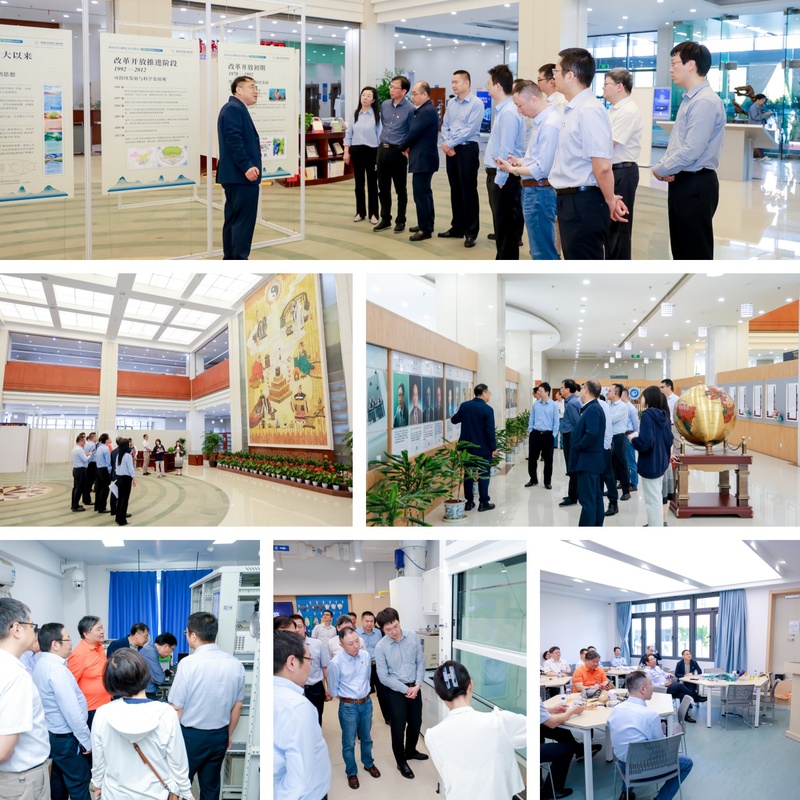 在奉贤校区,党建联建单位的各位领导和嘉宾到图文信息中心观看了资环学院专门策划的“只为青绿—生态文明系列展览”,参观了院士墙,实地走访了大气观测站和EHS体验中心,深入了解了学校和资环学院在生态文明建设方面的成果与特色,并围绕发挥政产学研用协同效能,助推学校和学院高质量发展等方面积极献言献策。