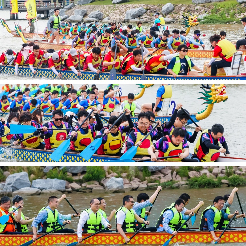 随着比赛哨声响起,一支支参赛队伍斗志昂扬,龙舟如离弦之箭般冲出起点,队员们挥桨疾驰,在波光粼粼的水面上劈波斩浪,展开了一场激烈而精彩的角逐。最终上海华谊能源化工有限公司、上海市天然气管网有限公司、上海市应急管理局执法总队、上海市生态环境局获得前四名。