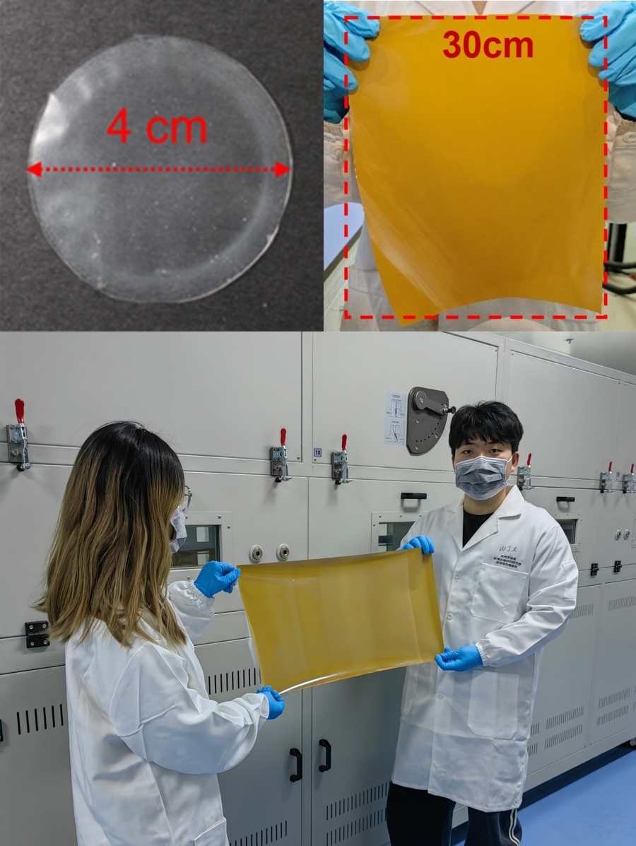 第一片直径40毫米的非氟分子筛膜样品成功制备。测试结果显示,这种新型非氟多孔膜的导电性能是商业Nafion膜的2.7倍,而对活性物质的渗透率降低近一半,并具备出色的稳定性与机械强度,实现了“低成本、高性能、无氟环保”的突破。