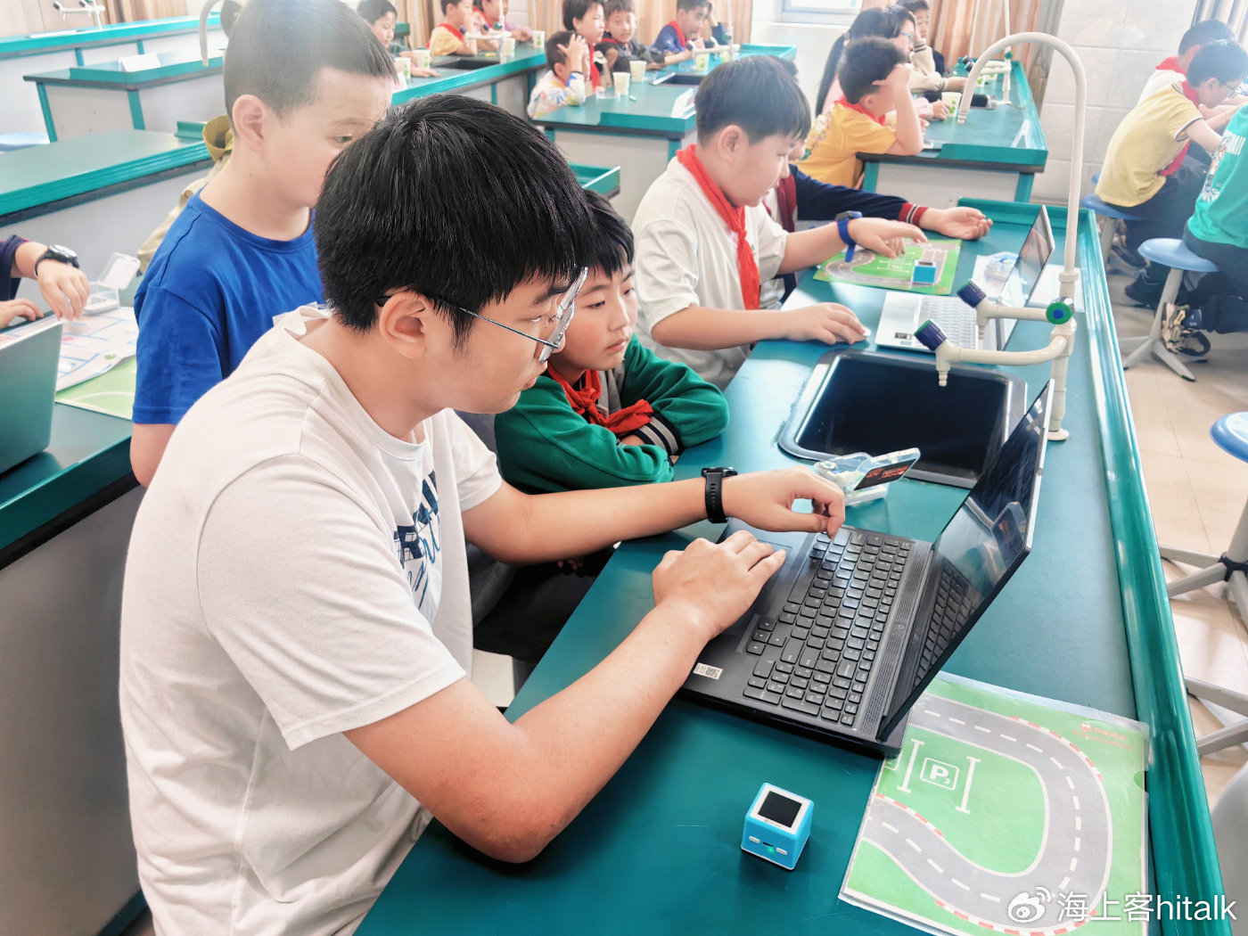 实践团成员指导仁德四小、仁德一小学生进行智能桌面机器人科普实践