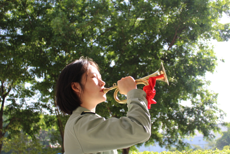 部队恢复司号员岗位时,刘姿含凭借特长成为全旅首批女司号员。“除了跟老班长学,自己得额外苦练,有时嘴吹肿了,吃饭都疼得龇牙咧嘴。但当我很快学会用气息吹响旋律时,还是挺骄傲的。”对她而言,司号员不仅是沉甸甸的责任,更是精神的接力。