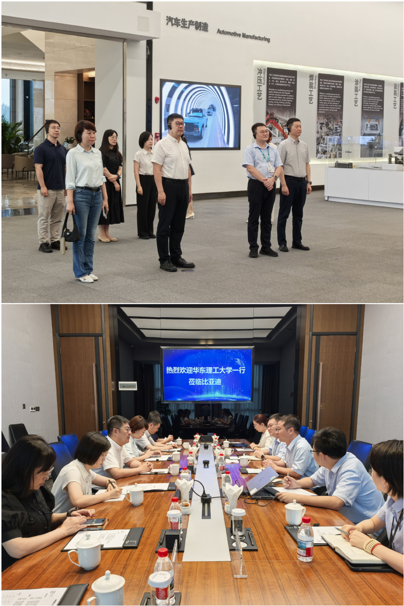 8月5日上午,调研组走进比亚迪股份有限公司,在集团展厅与技术博物馆深入了解企业发展历程与技术创新成果。座谈会上,比亚迪集团人力资源处薪酬管理部总监余昌祎、招聘总监许云龙分别介绍了企业人才需求及校企合作愿景。两位校友——汽车新技术研究院DM平台经理漆云飞(化工学院2012届本科毕业生)、第二事业部主任项目专员彭惠莲(机动学院2011届本科毕业生)结合自身职业发展,为母校人才培养建言献策。双方就深化校企合作、加强人才联合培养等达成一致。