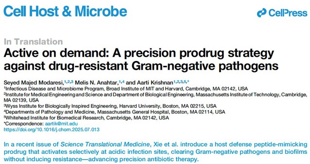 我校材料科学与工程学院刘润辉教授课题组在抗耐药阴性菌感染治疗领域取得的重要研究成果被哈佛和MIT学者在微生物领域国际顶刊Cell Host & Microbe做专门评述、高度评价(Cell Host & Microbe, 2025, 33(8), 1315-1317,https://doi.org/10.1016/j.chom.2025.07.013)。