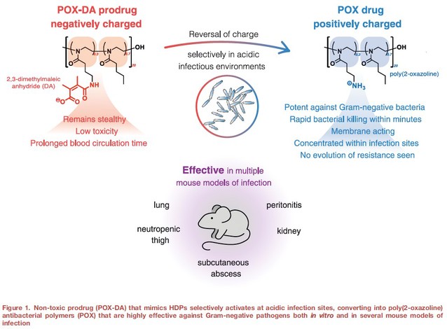 该研究报道了一种感染部位原位激活的宿主防御肽模拟前药设计策略,在实现“生理环境隐形、感染部位激活”响应性精准抗感染治疗的同时,还可将原本因毒性和生物利用度等问题受限的多肽类化合物转化为安全有效的候选药物分子,为开发具有体内应用潜力的新型抗感染药物提供了新思路。研究成果以“A host defense peptide-mimicking prodrug activated by drug-resistantGram-negative bacterial infections”为题,以封面文章发表在ScienceTranslational Medicine(Sci. Transl. Med.2025, 17, 801, eadl4870)。该研究成果最近还被Nature Reviews Drug Discovery作为研究亮点报道(https://doi.org/10.1038/d41573-025-00118-7)。