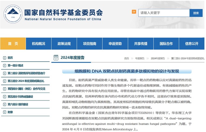 我校材料科学与工程学院刘润辉教授课题组在双靶点抗耐药真菌领域取得突破性成果入选国家自然科学基金委2024年度报告“2024年度资助成果巡礼”(https://www.nsfc.gov.cn/publish/portal0/ndbg/2024ndbg/03/info95241.htm)。