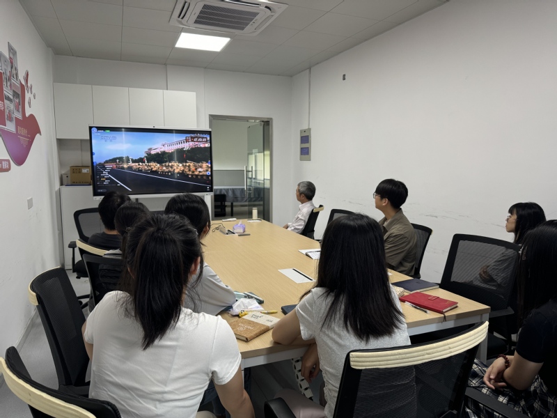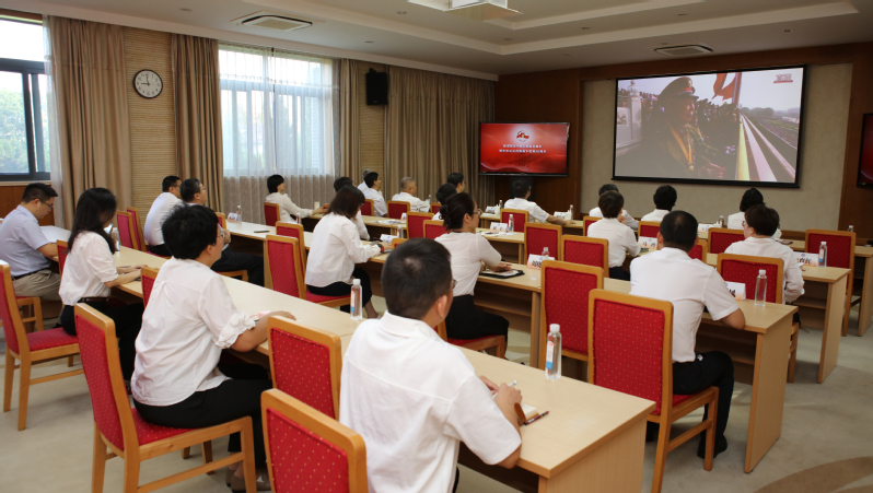 ▲校领导、部分职能部处负责人在和平楼第二会议室集中观看直播