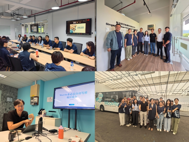 为提升学生对产业发展和行业前景的认知,资环学院还积极对接企业资源,在新加坡期间,实践团参访了Origgin投资公司与MooVita自动驾驶公司。Origgin公司负责人为实践团一行细致介绍了公司的发展历程、业务概况与核心定位,详细介绍了能源环境科技项目的商业化路径以及新加坡政府绿色融资激励政策等,鼓励同学们“用工程师思维算清每一笔环境账”。实践团一行还参观了新加坡济南硬科技转化中心,并与负责人进行交流。MooVita公司负责人介绍了公司在无人驾驶领域的技术优势、产业布局、全球战略以及在中国落地的情况,并激励学生注重学科交叉、锻炼工程实践能力,同时邀请师生到位于天津滨海新区的中国分公司进行交流合作。负责人还带领实践团实地参观了公司的研发场所及已投入测试的自动驾驶原型车。