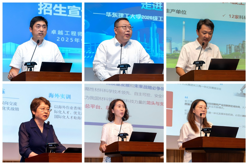 为增进学生对工程硕博士培养改革专项及相关联合培养企业的了解,9月7日下午,华东理工大学卓越工程师学院通过线上线下相结合的方式举办2026年工程硕博士培养改革专项校企联合招生宣讲会。中国化学工程集团有限公司、中国石油化工集团有限公司、国家能源投资集团有限责任公司、中国海洋石油集团有限公司、苏州国家实验室、长三角国家技术创新中心、中国石油天然气集团有限公司、中国中化控股有限责任公司、中国铁路工程集团有限公司、微创投资控股有限公司、中国东方电气集团有限公司、上海电气集团股份有限公司、中国医药集团有限公司、上海医药集团股份有限公司和中国宝武钢铁集团有限公司等15家合作企业代表来校宣讲,并在会后与学生展开深入沟通。宣讲会由卓越工程师学院副院长左鹏主持。