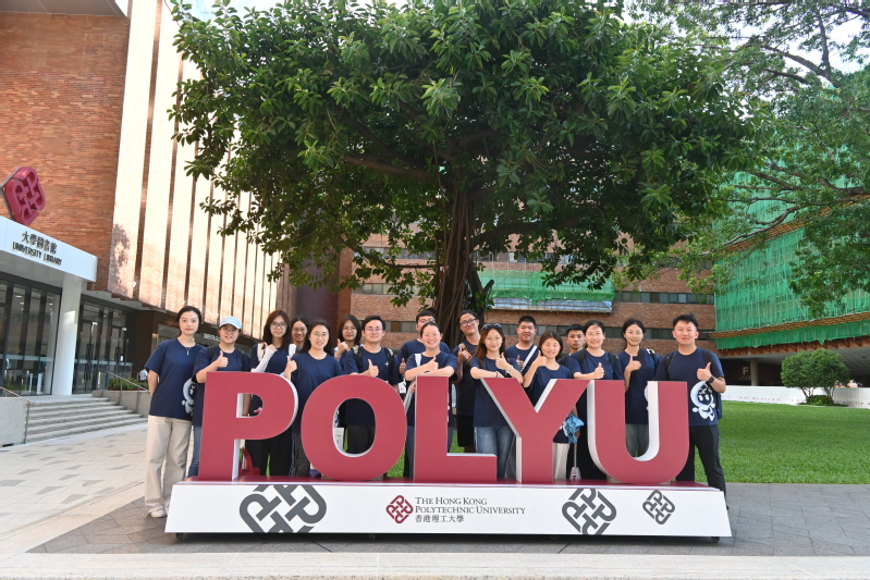 同日下午,访学团赴香港理工大学(PolyU)进行校园参观与交流。作为一所以应用研究和专业教育见长的全球百强高校,香港理工大学在工程、环境等多个学科领域具有显著影响力。在读内地学生代表为访学团介绍了校园建设与学科特色,师生一同参观校园主要科研教学楼并合影留念。