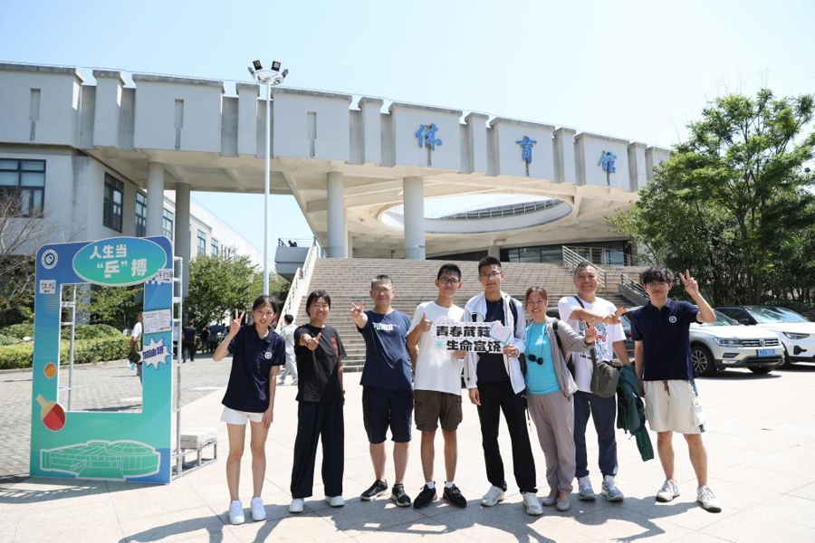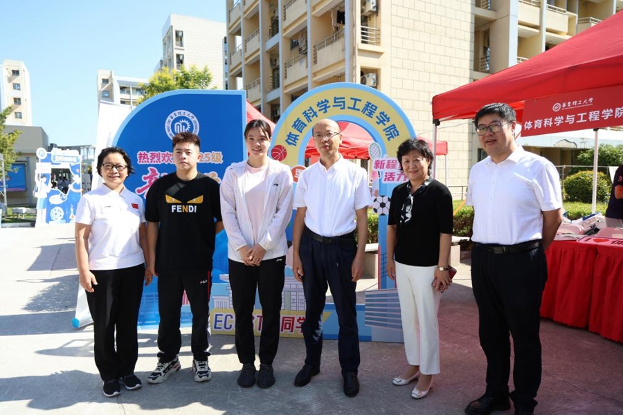 “早听说过王艺迪、王晓彤学姐的辉煌战绩,今天终于来到华理,还实地体验了乒乓球运动,果然人生当‘乒’搏!”新生在体育馆旁参与乒乓知识问答与颠球接力,感悟华理乒乓文化魅力;在南大门前的“时光邮局”,新生提笔给四年后的自己写信,家长则在旁写下鼓励话语;黄坡岭精神纪念碑旁的“德育课堂”,新生聆听领悟“652工程”历史;手性分子雕塑旁的“美育工坊”,新生体验扎染创作,亲手制作专属校园纪念品……