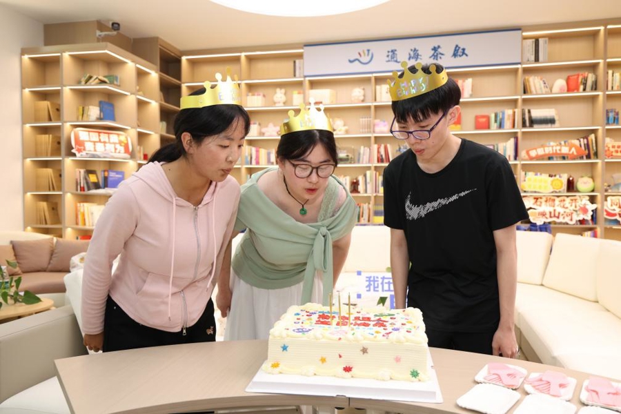 “把新生放在心上”,在这个特殊的日子里,学校不仅为3名寿星同学定制了承载心意的生日蛋糕,更是请老师们来到现场,与过生日的新生们一同将蛋糕切开,正在爱心屋办理业务的师生也不约而同唱起生日歌,为新生们送上满满祝福。