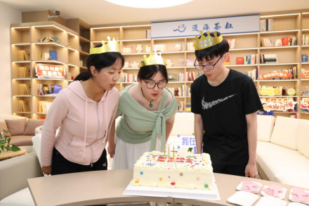 “把新生放在心上”,在这个特殊的日子里,学校不仅为3名同学定制了承载心仪的生日蛋糕,老师们更是来到现场,与过生日的新生们一同将蛋糕切开,正在爱心屋办理业务的老师和同学们也不约而同唱起生日歌,为新生们送上满满的祝福。