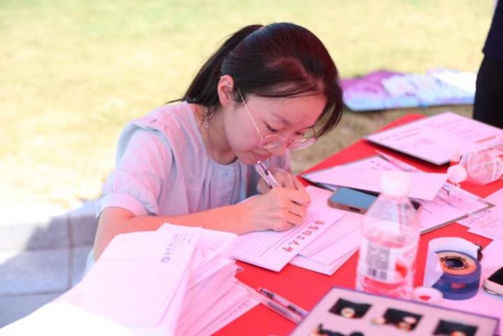 “早听说过王艺迪、王晓彤学姐的辉煌战绩,今天终于来到华理,还实地体验了乒乓球运动,果然人生当‘乒’搏!”新生在体育馆旁参与乒乓知识问答与颠球接力,感悟华理乒乓文化魅力;在南大门前的“时光邮局”,新生提笔给四年后的自己写信,家长则在旁写下鼓励话语;黄坡岭精神纪念碑旁的“德育课堂”,新生聆听“652工程”历史,深刻领悟“勤奋求实、艰苦奋斗、顽强拼搏、开拓创新”的黄坡岭精神;手性分子雕塑旁的“美育工坊”,新生体验扎染创作,亲手制作专属校园纪念品……在欢声笑语中,新生们逐渐熟悉校园,开启多彩大学成长之路。
