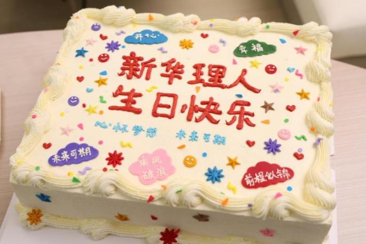 “把新生放在心上”,在这个特殊的日子里,学校不仅为3名同学定制了承载心仪的生日蛋糕,老师们更是来到现场,与过生日的新生们一同将蛋糕切开,正在爱心屋办理业务的老师和同学们也不约而同唱起生日歌,为新生们送上满满的祝福。