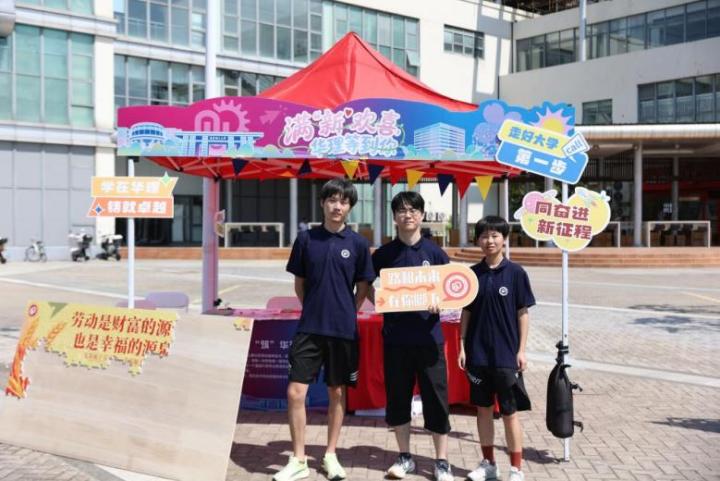 “欢迎各位学弟学妹!让坚持沉淀为生命中最甘美的醇酿,愿你们在华理,酿就属于自己的精彩。”“把Impossible变成I'm possible,不设限的你,每一秒都能刷新无限可能!”“投身国之重器的研发一线,力争做沉下心、扑下身、扎下根的华理工程师!”“愿你们在这‘理’找到真理的麦穗,用青春的语言,向世界讲好中国故事。”……校园主干道上,一组组特别的道旗,吸引了众多新生驻足观看、合影留念。