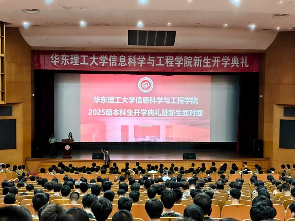 9月11日晚,信息科学与工程学院2025级本科新生开学典礼暨新生面对面活动在奉贤校区大学生活动中心剧场举行。信息学院党委书记侍洪波、院长钟伟民,党委副书记郭卫斌、许浩,副院长谭帅,自动化系主任宋冰、计算机系主任李建华、电信系主任姜庆超,教师代表及2025级全体本科生参会,新生辅导员潘恬主持活动。