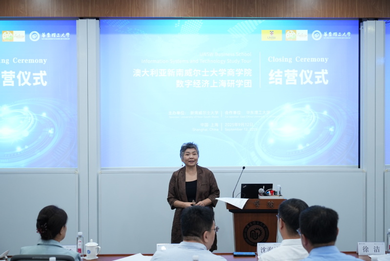 新南威尔士大学商学院郭子秀副教授、本次研学团带队老师发表感言。她衷心感谢上海市有关部门和华东理工大学对本次研学活动的大力支持,并表示通过此次研学活动,学生们不仅深入了解了上海在数字经济领域的发展成就,也切身感受到中国文化的独特魅力。