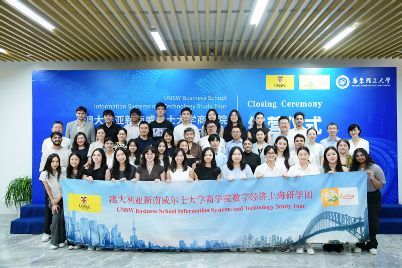9月12日,由澳大利亚新南威尔士大学、华东理工大学、澳中科技文化交流平台瞰海研学联合举办的澳大利亚新南威尔士大学商学院数字经济上海研学团结营仪式在我校商学院顺利举行。上海海外联谊会办公室副主任韩流、上海市对外友好协会非洲与大洋洲工作处处长徐洁、徐汇区人民政府侨务办公室主任潘淑敏、我校党委副书记沈海涛、澳大利亚悉尼上海商会会长卞军等出席本次结营仪式。