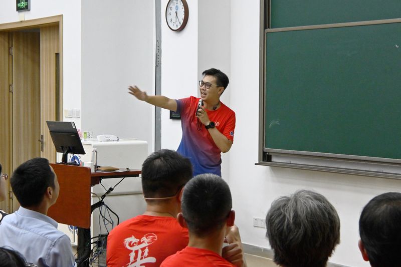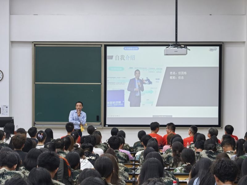 任国栋用“别让自己缺了袖子”比喻团队成员的重要性,结合戈壁挑战赛中团队协作场景,强调团队需分工默契、互助协作,摒弃“个人英雄主义”。基于医疗器械行业经验,他提出“五个不能”团队准则,呼吁新生保持进取,主动补能力短板,在集体中实现共赢。