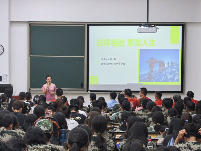 赵珊以“选择相信,重塑人生”为主题,讲述自己从800米艰难跋涉到完成95场马拉松、十年戈壁历练等的蜕变。她阐释“相信”的三个层次:相信身体潜力、相信社群力量、相信梦想与亲情,鼓励新生以信念引领行动,实现自我与关系的重塑。