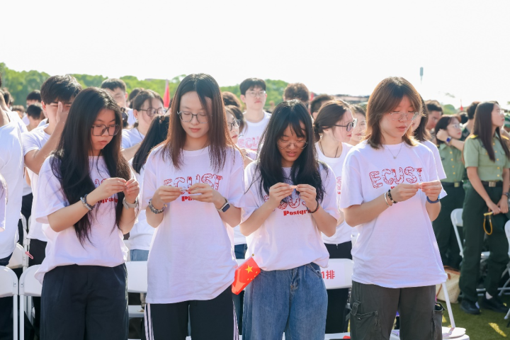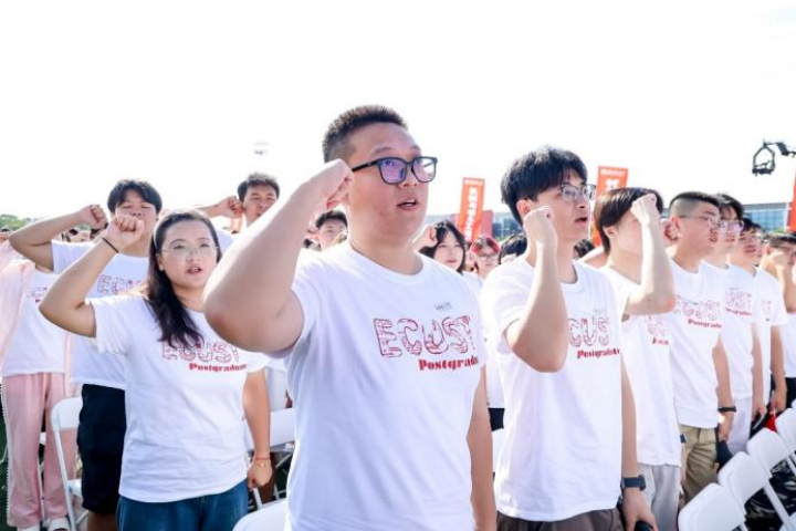 “我们将勤奋求实,以过硬本领绘就高质量发展的壮阔图景;我们将励志明德,以青春担当书写新时代奋斗的精彩篇章……”九三阅兵正式受阅队员、化工学院本科生李箐琳,带领全体新生进行青春宣誓。典礼最后,全体师生合唱校歌《明天的希望》,开学典礼在悠扬的歌声中落下帷幕。