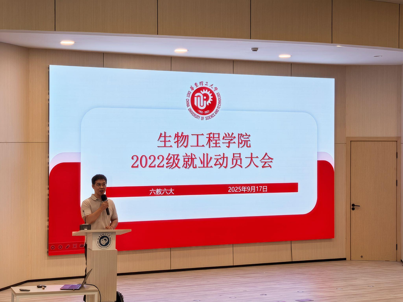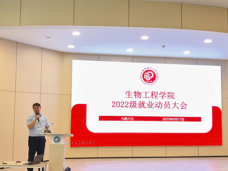 为深入贯彻党中央、国务院关于高校毕业生就业工作的决策部署,进一步推动毕业生高质量就业,9月17日下午,生物工程学院召开2026届本科生就业动员大会。学校党委学生工作部副部长、学生就业指导服务中心主任郑东应邀出席,生物工程学院党委书记程家高,年级辅导员周雨婷以及全体本科毕业生参加会议。会议由生物工程学院党委副书记孟庆鹏主持。