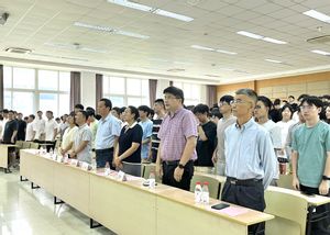 全体师生起立,奏唱校歌。信息科学与工程学院2025级研究生新生开学典礼圆满落幕。