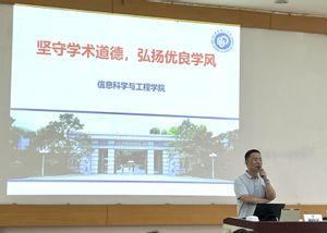9月16日下午,信息科学与工程学院2025级研究生新生开学典礼在徐汇校区八教101和八教201举行。信息学院党委书记侍洪波、院长钟伟民、党委副书记郭卫斌、党委副书记许浩、副院长唐漾、副院长和望利、计算机系主任李建华、电信系主任姜庆超及教师代表出席,全体2025级研究生参会。开学典礼分别由研究生辅导员王一婷和王潇主持。