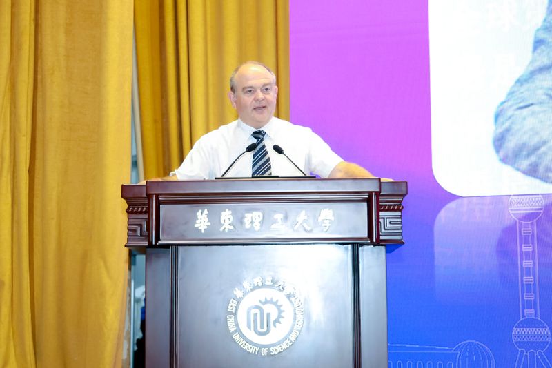 雅克欢迎中国同学选择了国际卓越工程师学院,他表示,学院构建了独具特色的卓越工程师培养体系,致力于培养既扎根中国大地、又具备全球视野的工程精英。李霄鹏从1977年和2025年两张毕业照片的对比出发,回顾了我校来华留学发展历史。他表示,学校正以“一张名片、三根支柱”为核心构建“留学华理”新生态系统,培养新时代高素质知华友华国际青年。