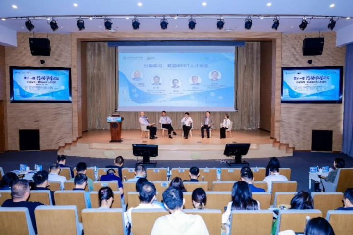圆桌论坛环节中,华东理工大学商学院副院长楼高翔与同济大学经济与管理学院党委书记施骞、上海师范大学商学院院长刘江会、北京百年基业管理顾问创始合伙人唐长军、上海工商管理专业学位教指委行动学习专委会召集人陈万思,共同围绕“行动学习如何赋能iBEST人才培养”展开讨论。