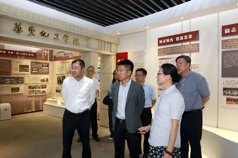 会见前,范绪锋一行实地调研了华东理工大学建设成就展,了解学校70多年的发展历程和办学成就。