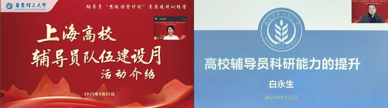 为深入学习贯彻习近平新时代中国特色社会主义思想和全国教育大会精神,高质量实施新时代立德树人工程,加强辅导员队伍建设,9月25日,学校在徐汇校区商学院401室举行“思政领贤计划”辅导员素质提升训练营开营仪式暨首场报告。党委学生工作部(处)部(处)长崔姗姗、参训辅导员出席,活动由党委学生工作部(处)副部(处)长万胤婕主持。