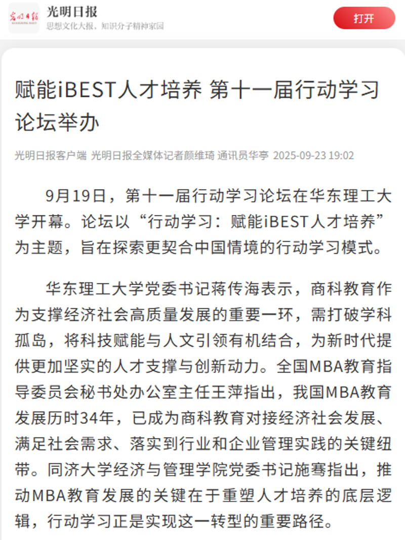 【光明日报客户端】赋能iBEST人才培养 第十一届行动学习论坛举办