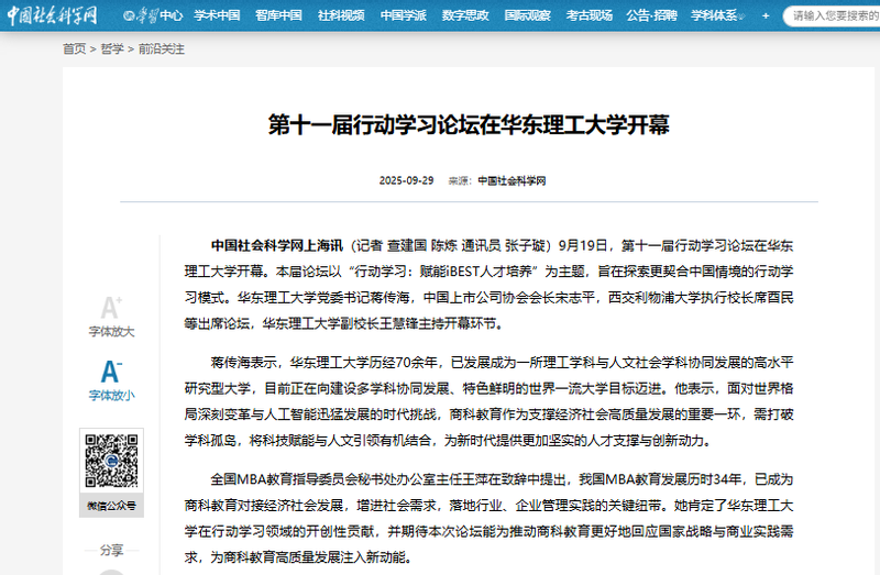 【中国社会科学网】第十一届行动学习论坛在华东理工大学开幕