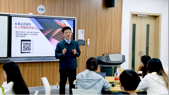 通过对连续5届、近600名法学本科生的调研,粟瑜和团队总结出课程教学存在“吸收难、应用难、创新难”三大痛点。聚焦痛点,团队从课程内容、教学资源、教学方法、教学评价与课程思政五个方面入手,对传统课堂进行系统性重塑。为了让学生听得懂、用得上,他们在课堂上架起“法工桥”,邀请工科老师介绍智能时代“AI换人”的技术基础及其发展趋势;开设“虚拟仲裁庭”“云上谈判间”,让学生贴近实战提升裁判能力与非诉处置能力。通过讲述民生法治先进人物事迹的“劳法先锋”、鼓励学生访谈校园劳动故事的“劳友记”等教学模块,增强学生对现实生活的关怀,等等。