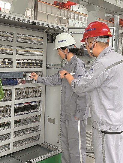 学生与中化学装备工程师现场调试控制系统。