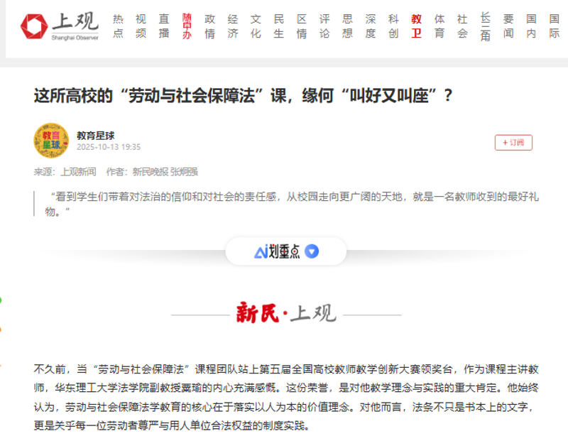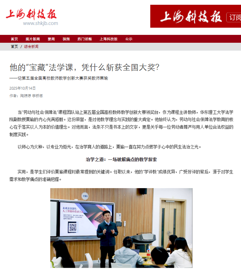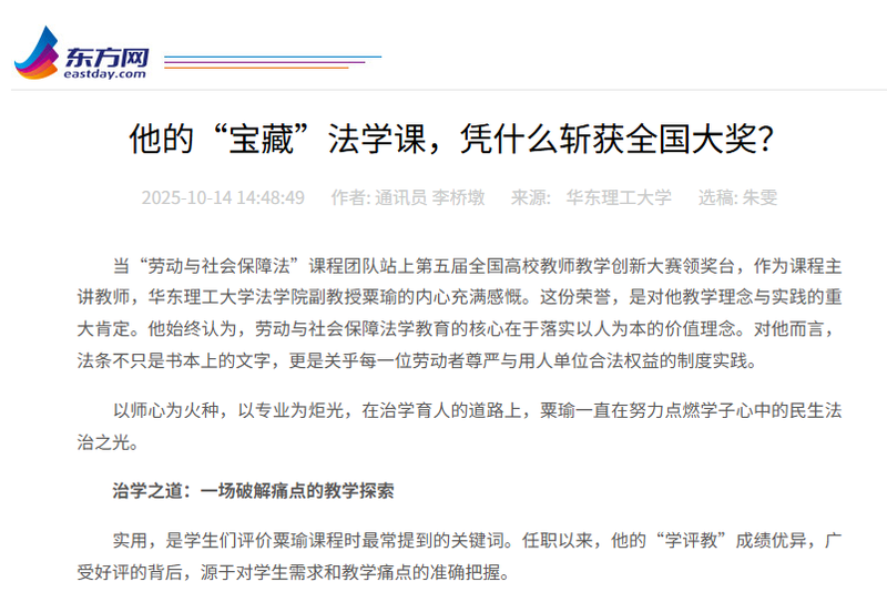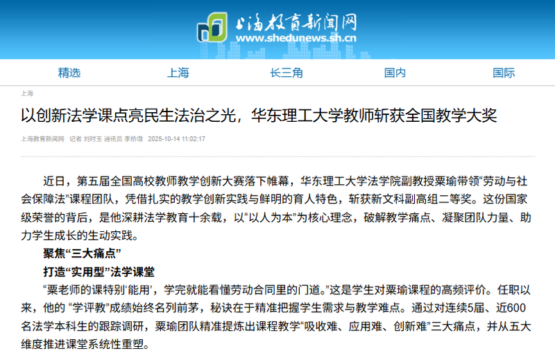 【上海教育新闻网】以创新法学课点亮民生法治之光,华东理工大学教师斩获全国教学大奖