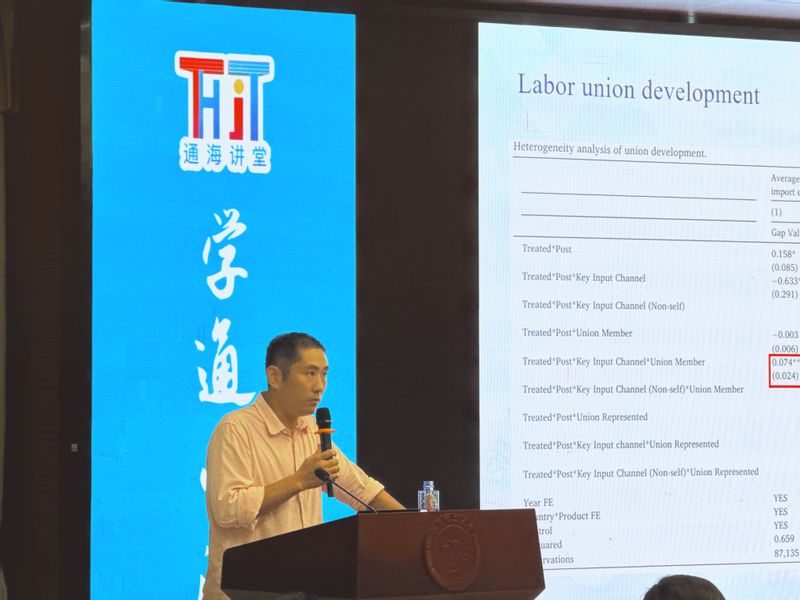 车翼在报告中详细分析了中美贸易关税变动对美国自华进口商品的影响,揭示了关税规避的背后问题,进一步阐述了关税规避主要通过中间品贸易渠道实现,并强调了进口商关税负担对关税规避行为的放大作用。此外,他还探讨了地方社会环境的作用,分析了选民的贸易保护态度以及工会发展水平在调节市场需求对关税规避影响中的关键作用。