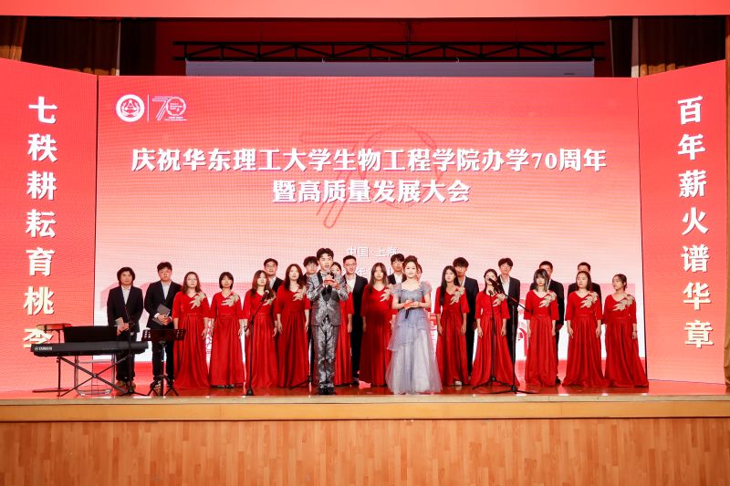 在校歌《明天的希望》的昂扬旋律中,庆祝华东理工大学生物工程学院办学70周年暨高质量发展大会圆满落幕。随后,以“七秩耕耘育桃李,百年薪火谱华章”为主题的文艺汇演拉开帷幕,为参会嘉宾献上了一场精彩的视听盛宴。