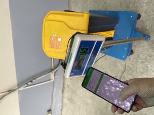 图为学校危废站蓝牙秤称重,信息自动录入系统。