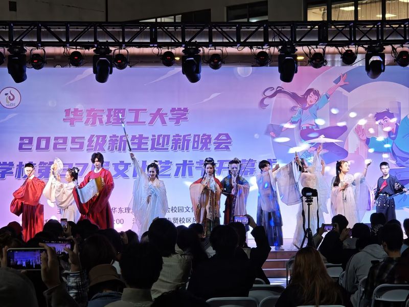 10月21日晚,我校2025级新生迎新晚会暨第37届校园文化艺术节开幕式在奉贤校区风檐广场举行。现场近千名观众欢聚风檐广场,共同观看了这场青春与艺术交织的视听盛宴,正式拉开了为期一个月的文化艺术节序幕。