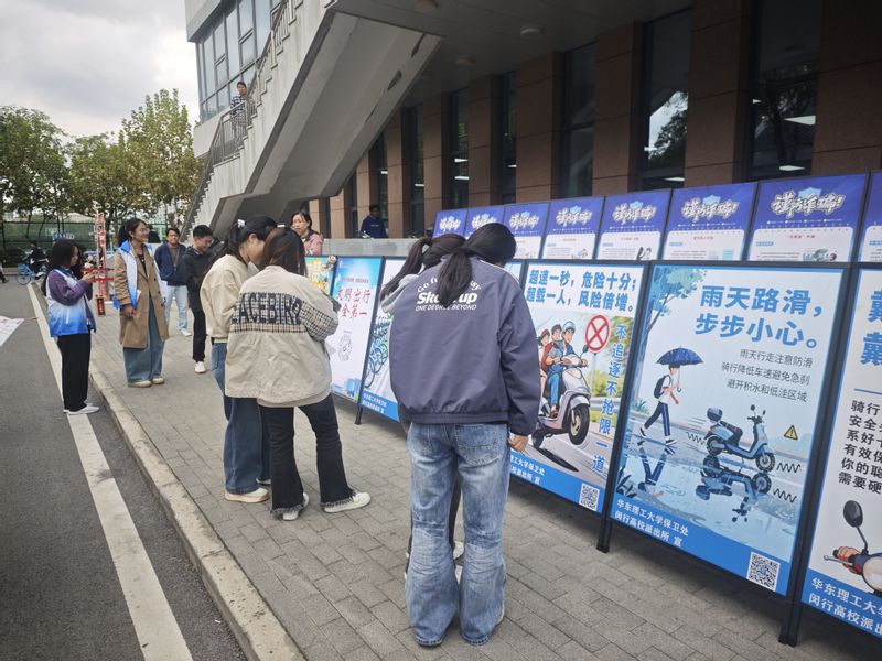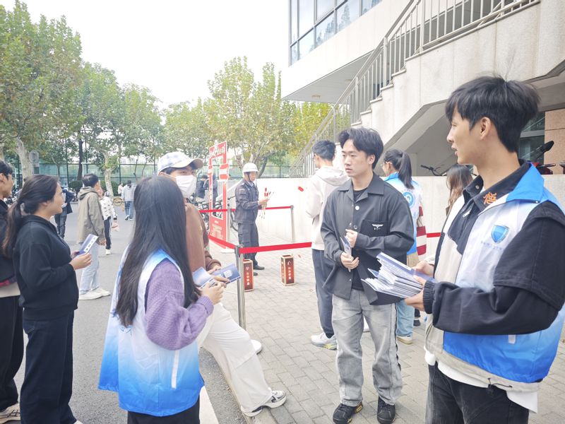 为积极应对当前严峻的电信网络诈骗形势,进一步提升广大师生的交通安全意识,筑牢校园安全屏障,10月23日中午,我校保卫处联合属地闵行高校派出所,在徐汇校区一食堂门前举办了一场以“筑牢安全防线,共建平安校园”为主题的线下宣传教育活动。此次活动将反诈宣传与交通安全教育深度融合,精准针对高校环境特点,为广大师生上了一堂生动而深刻的安全教育课。