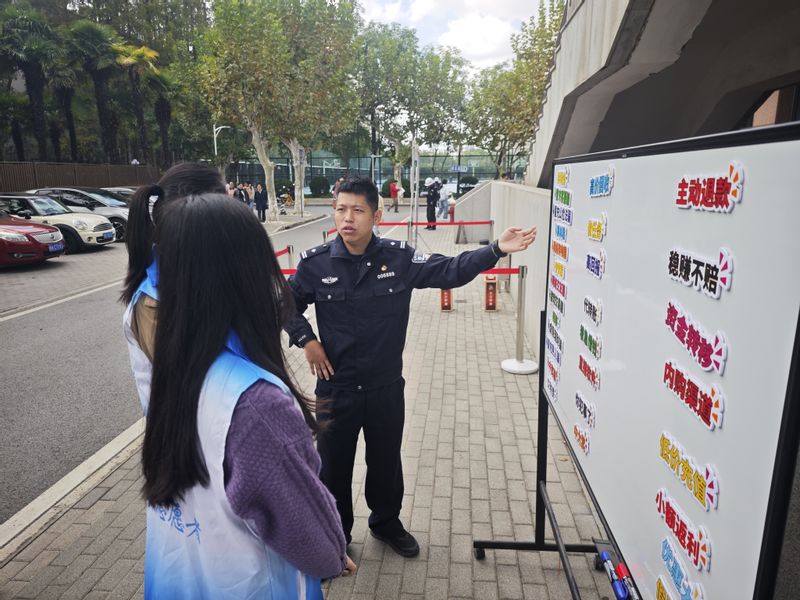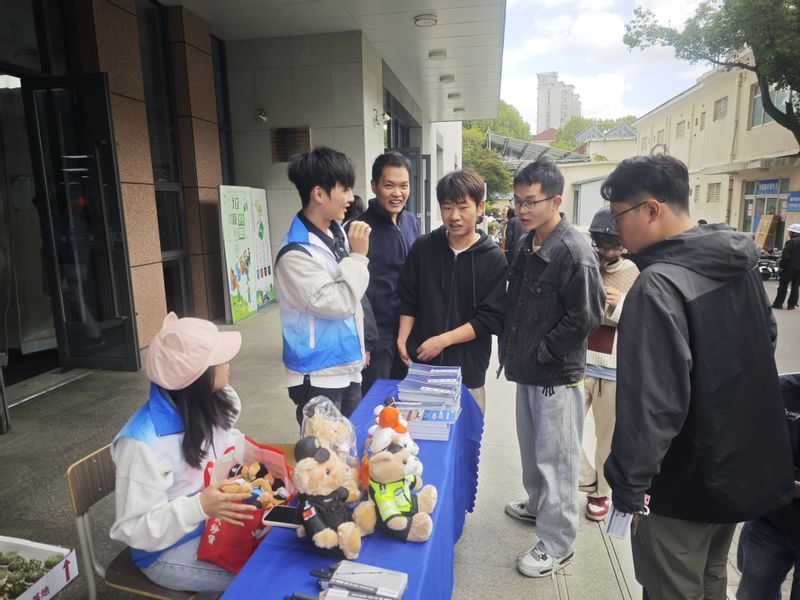 为积极应对当前严峻的电信网络诈骗形势,进一步提升广大师生的交通安全意识,筑牢校园安全屏障,10月23日中午,我校保卫处联合属地闵行高校派出所,在徐汇校区一食堂门前举办了一场以“筑牢安全防线,共建平安校园”为主题的线下宣传教育活动。此次活动将反诈宣传与交通安全教育深度融合,精准针对高校环境特点,为广大师生上了一堂生动而深刻的安全教育课。